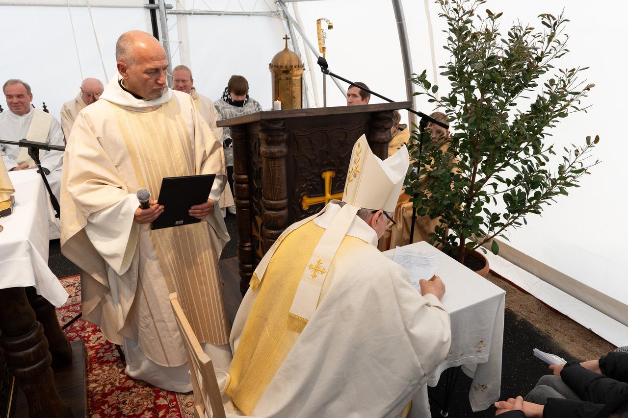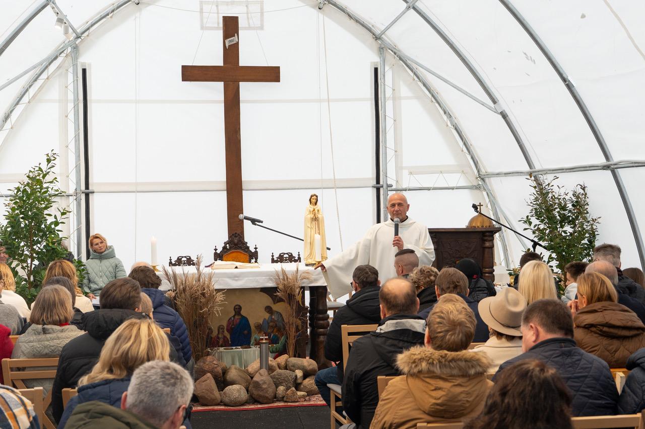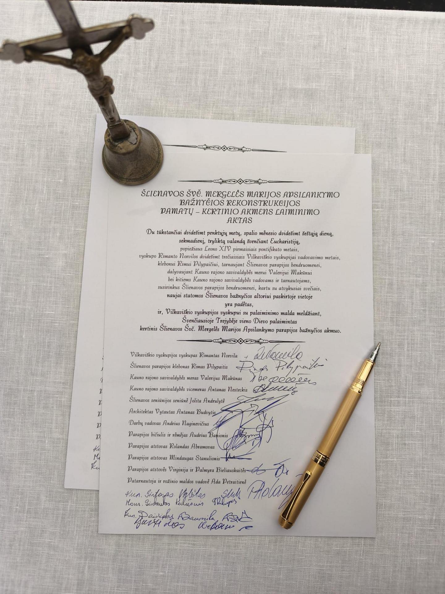 Šlienavos bažnyčios kertinio akmens laiminimas ir statyba
