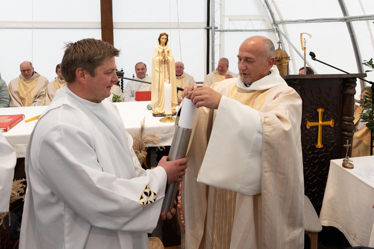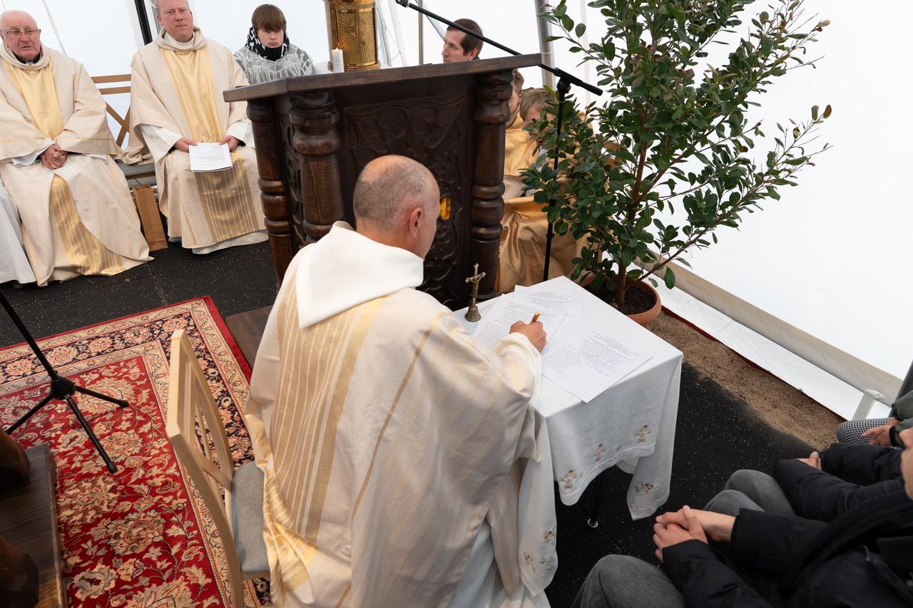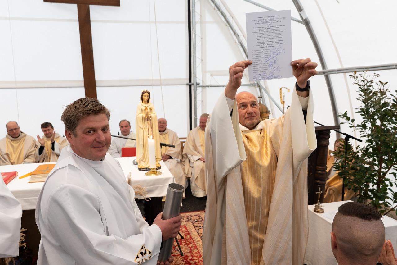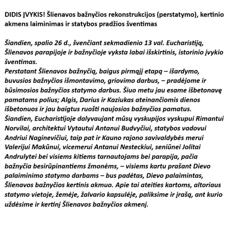 Šlienavos bažnyčios kertinio akmens laiminimas ir statyba